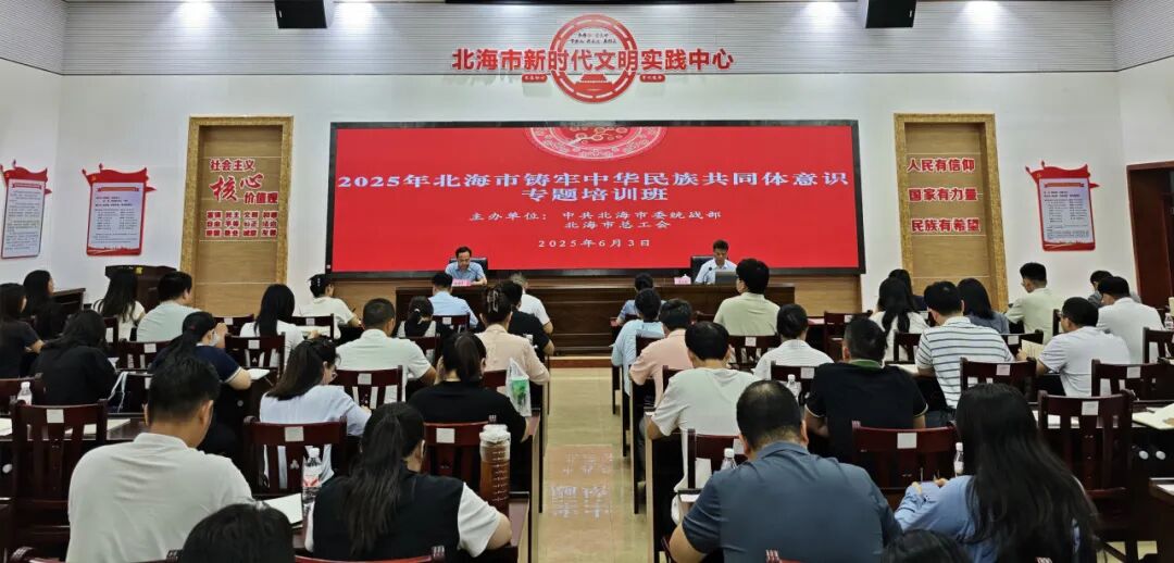 6月3日下午,北海市委统战部、北海市总工会联合举办2025年北海市铸牢中华民族共同体意识专题培训班,市直相关单位铸牢中华民族共同体意识工作宣讲员,市委统战部、市总工会干部职工,县(区)民宗干部、乡镇(街道)统战委员等160余人参加培训。培训班邀请自治区民宗委二级巡视员、自治区民宗委民族工作宣讲团成员吴汉时授课。